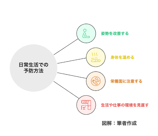 しびれの予防と治療は、日常生活の質に直結します。ここからは、しびれを防ぐためにできる生活習慣の改善や、しびれが発生した場合の治療法について詳しく解説します。